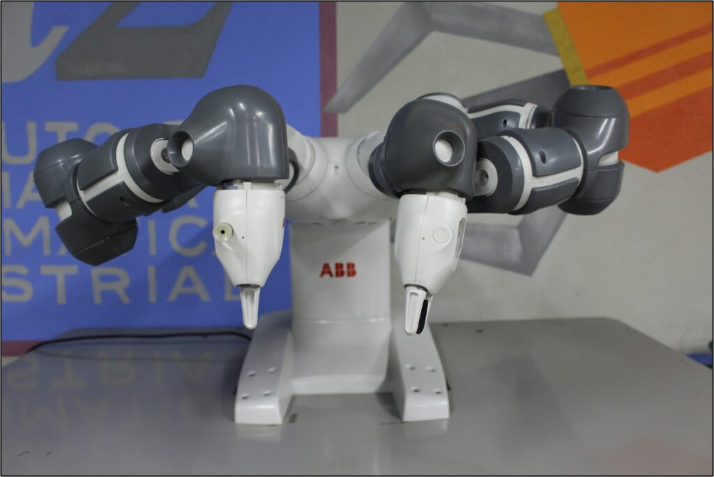 El modelo YUMI IRB 14000 de ABB es un robot de doble brazo colaborativo. Este robot permite controlar cada brazo como si dispusiera para ello de dos controladores individuales, permitiendo realizar tareas totalmente independientes.